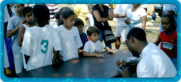 Sinorice Moss signs autographs at a local park in Florida, 2006 |